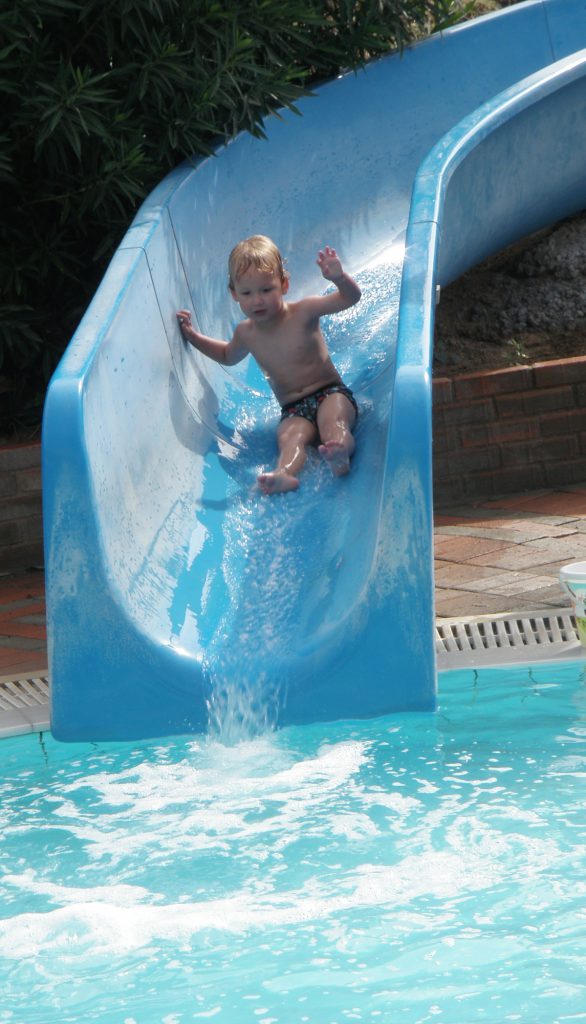 Op de ligfiets.Drie dagen lang gaan we ons als echte fietsers voorbereiden. Dat betekend slapen en stapelen. En waar kan je dat beter doen dan in een All-inclusief hotel. Ook als je veel hebt gereisd blijf je je uitdagingen zoeken, en wij hadden alle drie nog nooit All-inclusive ergens gezeten. Simeon geniet van het spelletje met de stokjes en balletje (mini-golf), de speeltuin en natuurlijk het zwembad. De eerste dag is het wel wat onwennig voor hem. Wanneer gaan we weg, waar is de tent. Voor Simeon stond vakantie gelijk aan in een tent slapen. Maar zijn eigen grote bed beviel hem ook wel. We moeten hem alleen weer ontwennen na deze dagen dat hij niet 3 keer op een dag een ijsje mag eten, Maar er is ook zo veel keuze, banaan, chocolade wit en ijsjes met de zelfde kleur als zijn roze knuffel kat rosa.