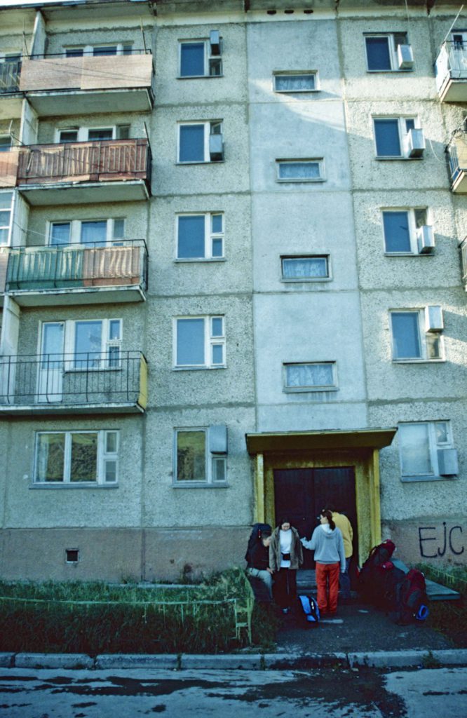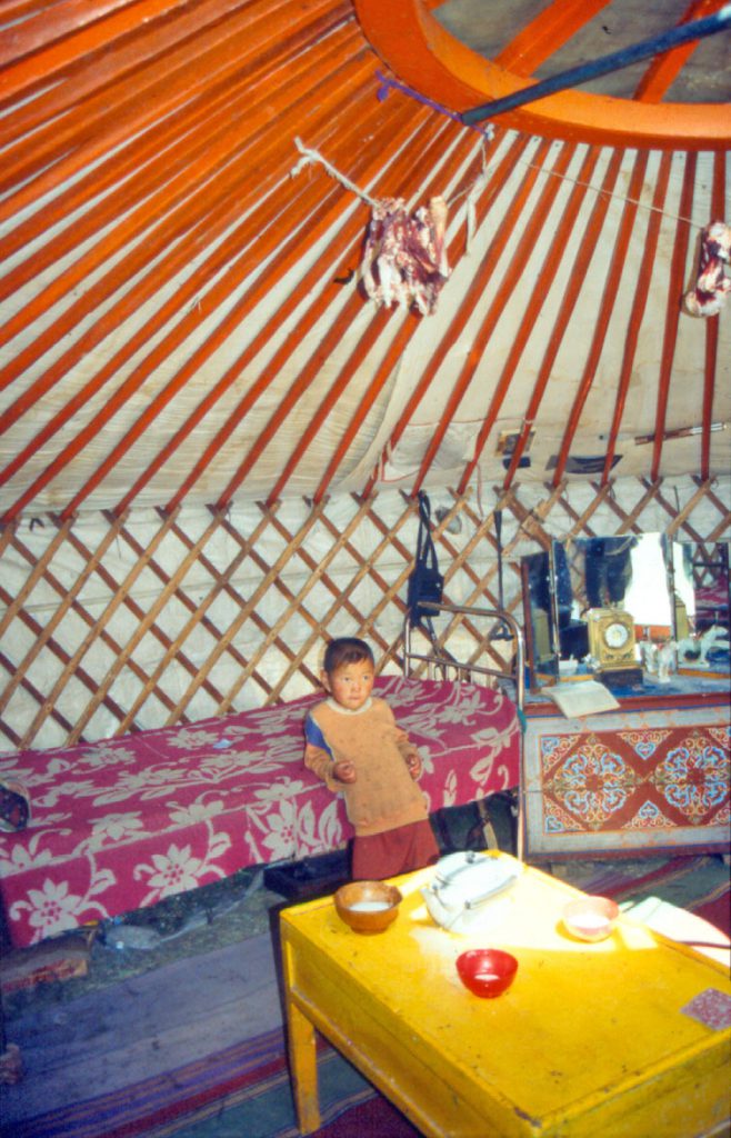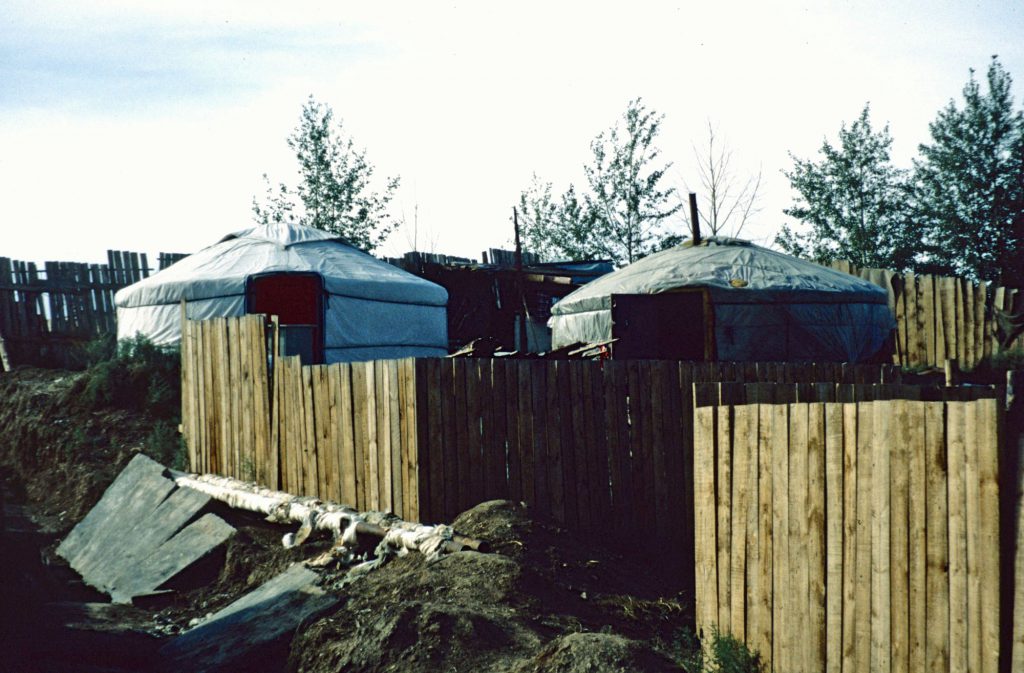 We lijken bijna wel een groepsreis. De meesten die we al van de treinreis kenden zitten in hetzelfde hotel. Het hotel is een flatgebouw waarbij een huis is omgebouwd tot receptie en restaurant, en verder zijn alle andere kamers omgetoverd tot hotelkamers. En we gaan met z’n allen in een busje naar een echt traditioneel tentenkamp. Het busje was al laat, want er heerst een mini oliecrisis in Rusland en Mongolië. Na een stuk rijden is zo’n vijf kilometer voor ons kamp de benzine helemaal op, en moeten we wachten op een oplossing. Dit geeft tijd om wat rond te lopen en nog even bij de ger langs te gaan die we in de verte zien. We worden gelijk uitgenodigd om alles te bekijken. Dit is waarschijnlijk onze enige kans om een echte ger te zien, onze toeristische gers zagen er wat luxer uit, en vooral schoner. In de ronde tent van zo’n 5 meter in diameter moet alles gebeuren. De paardenmelk staat al dagen midden in de kamer klaar, het vlees hangt te drogen en daaronder ligt nog iemand te slapen.
