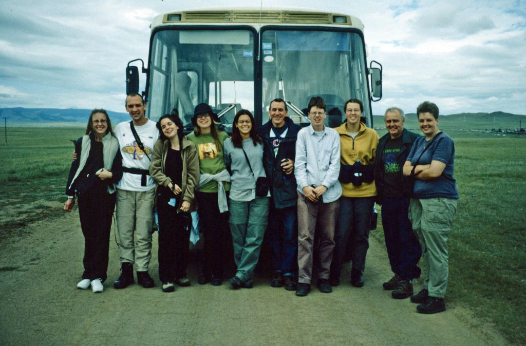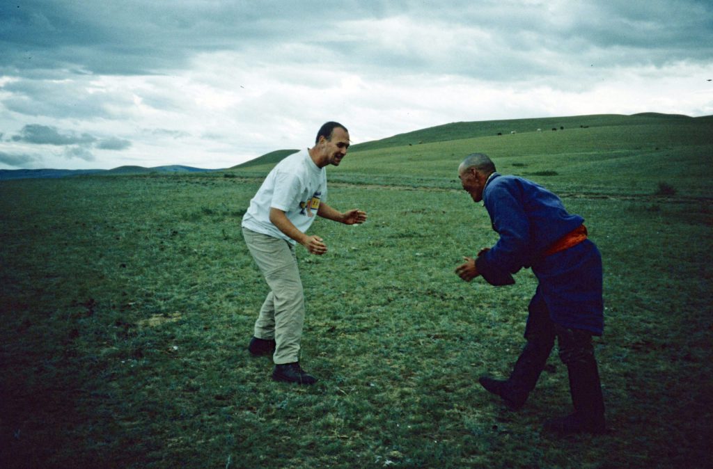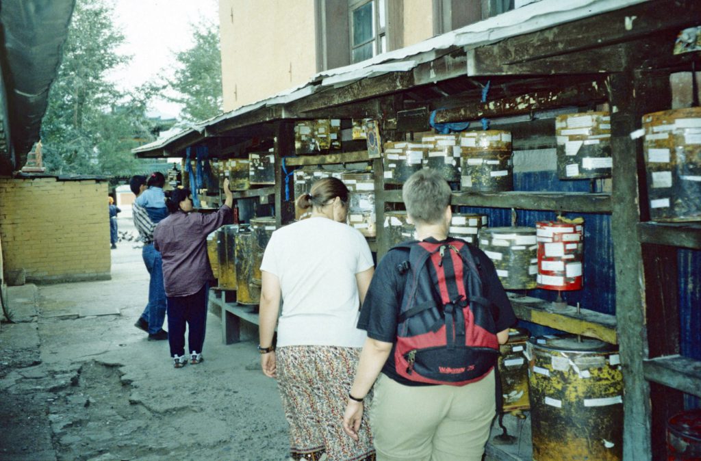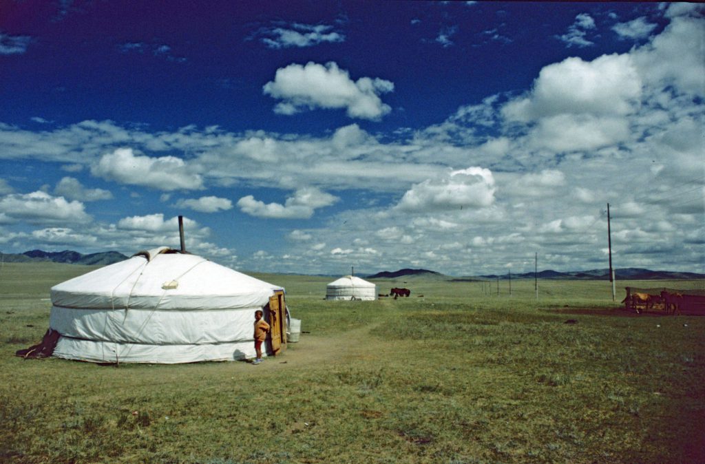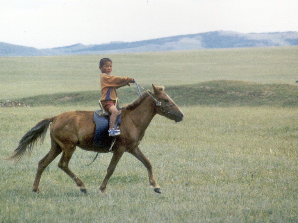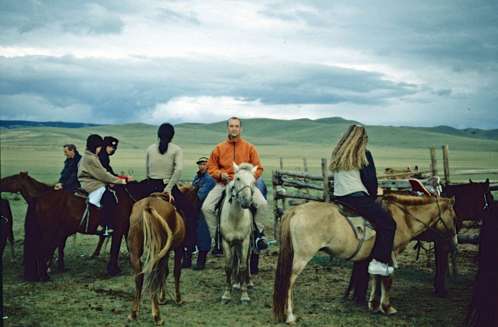Na een uur is een oplossing gevonden, de paarden zijn van het ger kamp gehaald en we moeten daarop verder. Els en Truusje moeten beide niets van die beesten hebben, maar toen ze er eenmaal opzaten, zijn ze er ook opgebleven. Het groene heuvelachtige landschap is adembenemend mooi. Er is niets indrukwekkendst te zien, maar de uitgestrektheid van de vlaktes maken het een perfecte plek om door heen te dwalen. Els vindt het zo’n schitterend land, dat ze zelfs bereid is om paard te leren rijden om dan weken door de Gobi steppe heen te rijden. In het tentenkamp rijden we nog wat paard, wandelen we wat, en worstelen we met de Mongolen. Er worden wat blokken hout op de kachel in onze ger gestopt, want het wordt tegen de avond al heel erg koud. We zijn hier midden in de zomer, maar als we ’s nachts buiten zitten om naar de sterren te kijken, vriest het. Geen wolkje aan de lucht, en in de verste verte geen lampje dat het beeld maar iets kan verstoren. De sterren zijn zo duidelijk te zien, en ook de melkweg is een duidelijke band aan de hemel. Bij iedere vallende ster moeten we ons wel stil houden, want dat is hier niet veel goeds, er is weer iemand overleden.