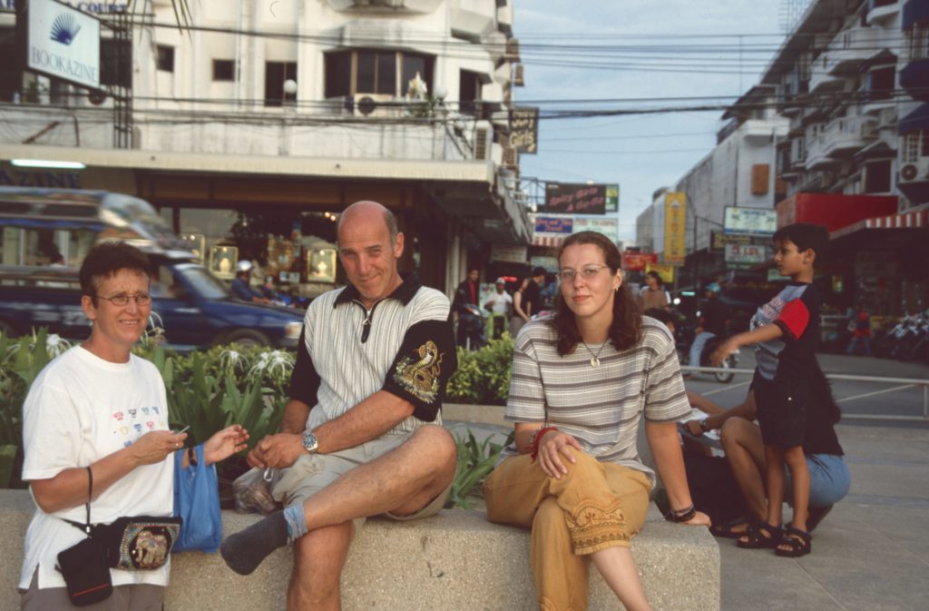 Arjans ouders, Marry en Rinus, zijn ook in Thailand en gaan na hun rondreis samen met ons aan het strand uitrusten. Na 10 maanden ze niet gezien te hebben zoeken we ze gelijk op in hun hotel.