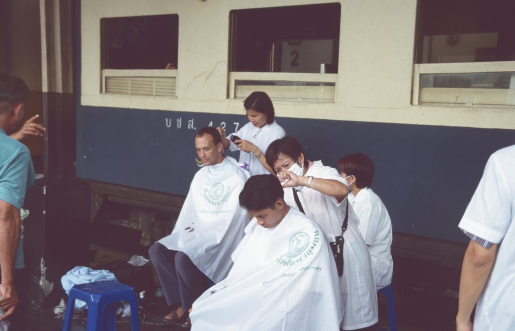 Als we Marry en Rinus op de discobus naar het vliegveld hebben gezet, gaan we bij een reisbureau onze treintickets naar de noordelijkste grens met Laos en onze visa voor Laos en Cambodja ophalen. De volgende ochtend zou de trein vertrekken, maar het reisbureau had de data van de visa verwisseld dus het treinkaartje mochten ze houden en de volgende ochtend waren we op weg naar Cambodja. De reisgids was nog niet open geweest, maar we zien wel.