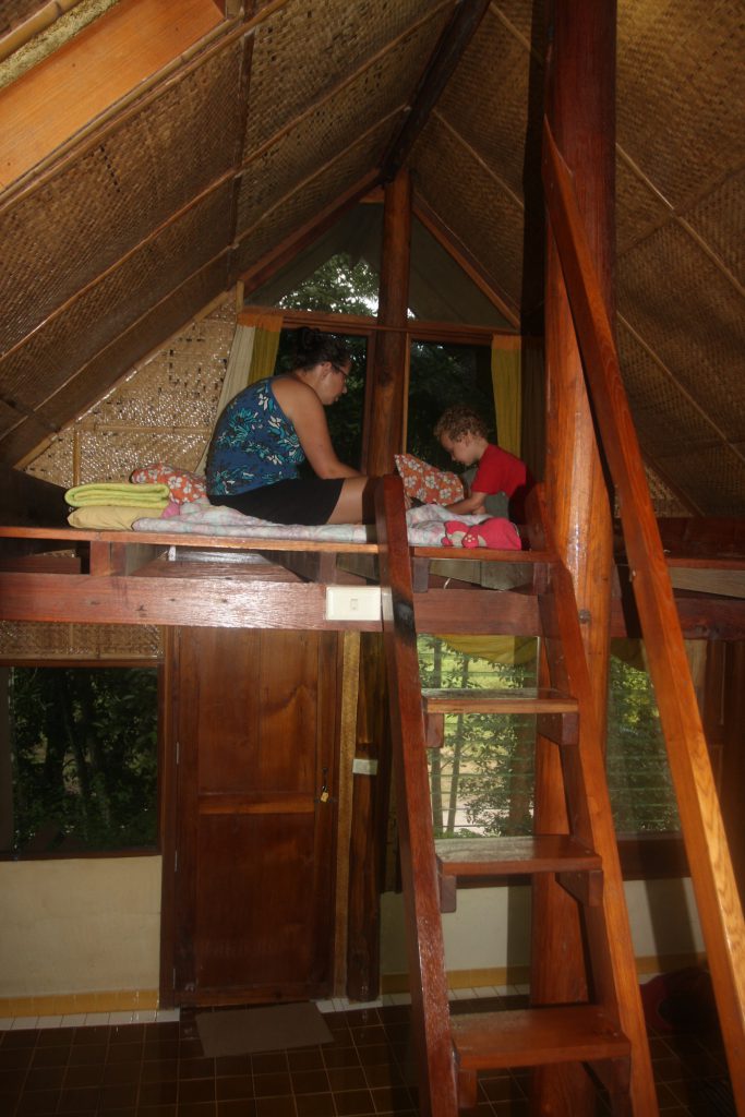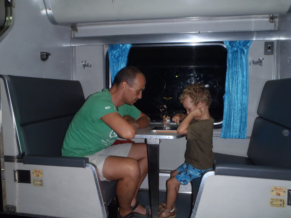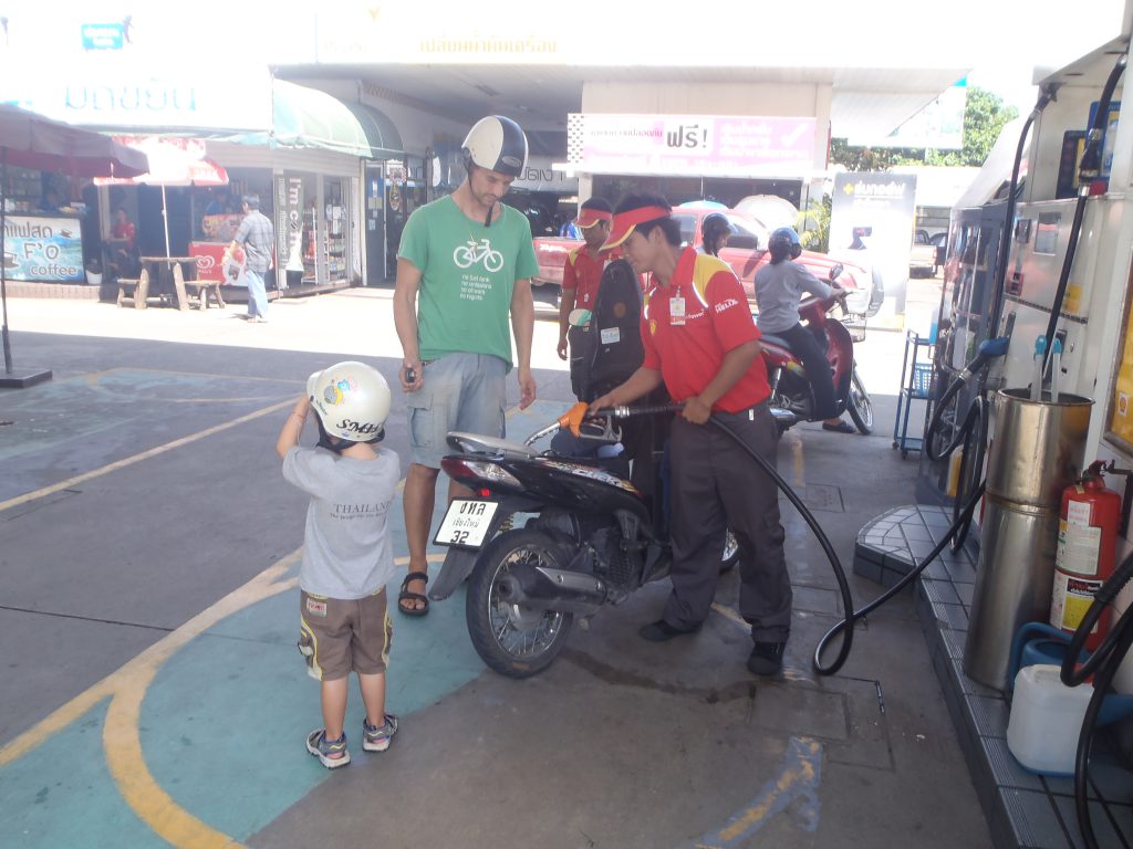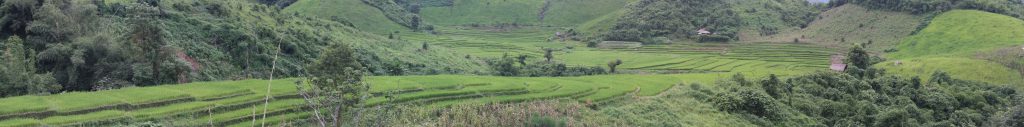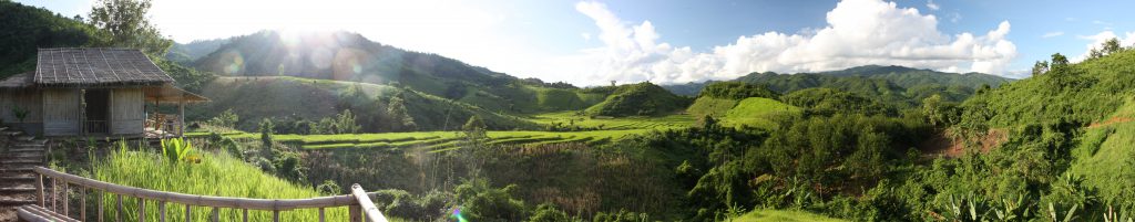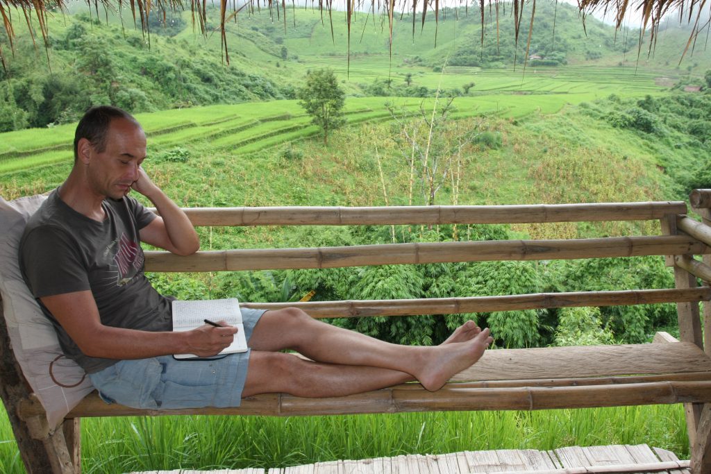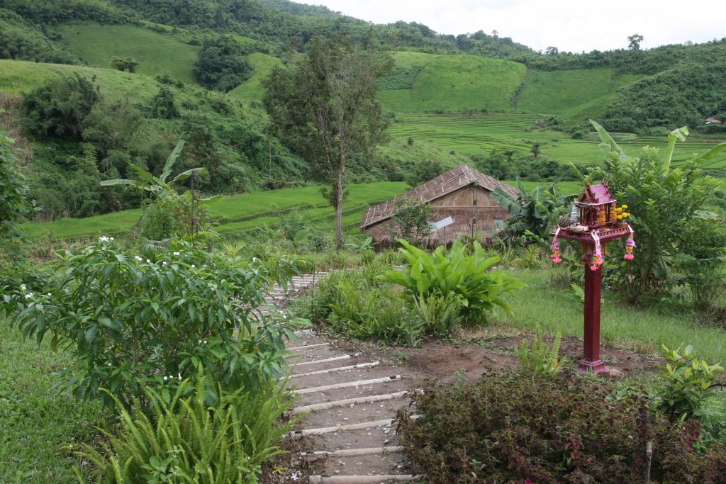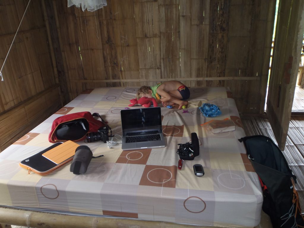 Het voelt wel heel anders met een auto op pad. Het is wel met eigen vervoer, maar het voelt niet zo eigen. In plaats van reizen voelt het meer als vakantie. We zien een fietsreiziger haar fiets zwetend naar boven duwen. we doen ons raampje open maar voelen opeens de afstand tot dat reizen, doen het raampje maar weer dicht en rijden verder met de airco aan. Het is 10 dagen een echte familie vakantie geworden. Arjan is aan het rijden, Els zit ernaast kaart te lezen en Simeon zit op de achterbank te roepen of we al bij het hotel zijn, en dat hij de iPad wil. De moesson is nog niet afgelopen, we lezen dat de trein niet meer rijdt door de overstromingen, en wij staan in de file omdat de aardverschuivingen veel bomen en aarde op de weg heeft achtergelaten. Een waterval en een hotspring onderweg zijn dicht door de vele regen en daarom zijn we genoodzaakt om in Pai voor een hotspring maar een hotel te nemen met een persoonlijke hotspring bij de kamer.