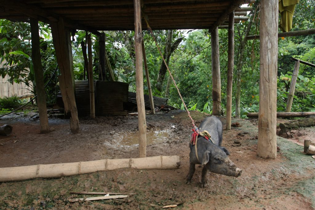 De hoofdweg door het gebied is in een hele goede staat en is in de jaren 80 aangelegd om dit gebied te ontsluiten en er meer controle op te krijgen. Een stuk verder ligt de beroemde gouden driehoek, waar Laos, Thailand en Birma samenkomen, en dit gebied was het centrum van de Opium smokkel. Er zijn heel veel verschillende volkeren die hier leven in kleine dorpjes. Sommige van deze minderheden zijn vluchtelingen uit uit buurlanden, en eind jaren 40 is zelfs het 93ste Chinese K.M.T. leger hier terechtgekomen vluchtend voor de communisten. Nadat het gebied is ontsloten is de opium handel verruild voor een andere Chinese specialiteit de thee plantages. In Mae Salong is om de andere winkel een thee winkel. Wat ook opvalt in dit verder arme gebied is de grote hoeveelheid kerken. De grote zendingsdrang van de protestanten heeft ertoe geleid dat in de kleinste dorpen met soms maar 250 inwoners, tussen alle houten hutjes een enkel stenen gebouw staat voor de soms 10 nieuwe christenen. De concurrentie is heel ongelijk als met veel geld van buitenaf deze 10 het zoveel beter krijgen, met als enige voorwaarden hun oude identiteit opgeven. Als westerling worden we gelijk binnenghaald met het idee dat wij ook christelijk zijn, maar we krijgen een vieze bijsmaak als we mensen in hun klederdracht hun nieuwe god zien aanbidden.