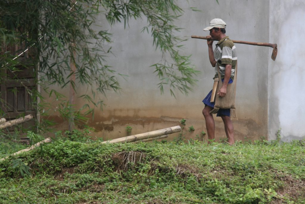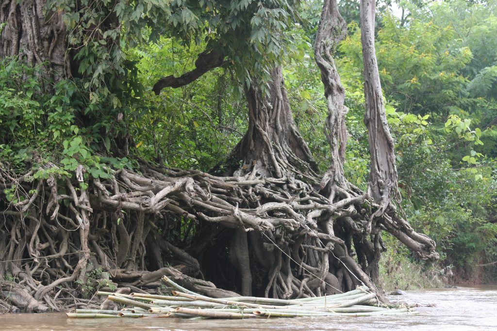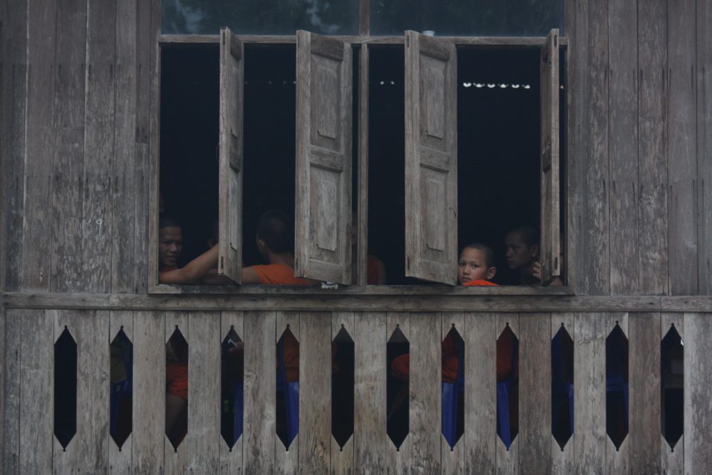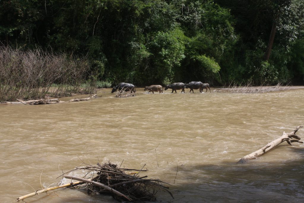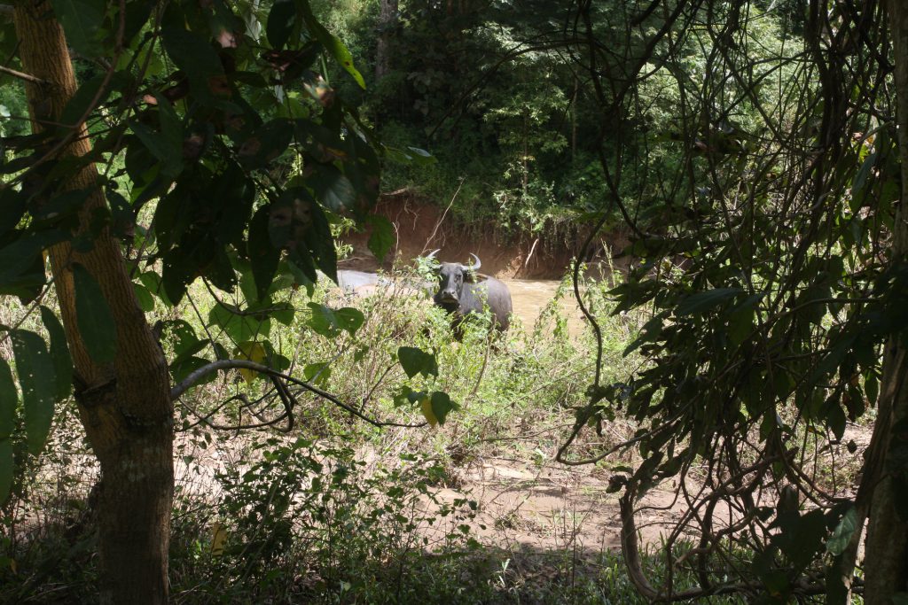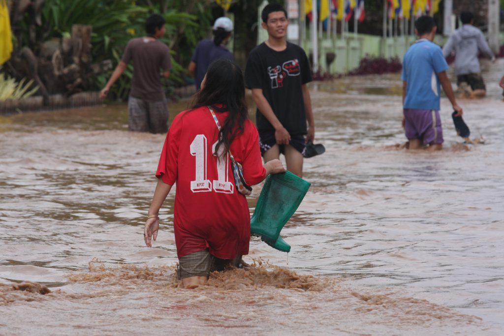Er valt niets te zien van de prachtige omgeving om Mae Hong Son, alles is gehuld in een dikke mist, het heeft dan ook geen zin om nog hoger te gaan voor de uitzichten over Birma. Het is een treurige dag om te rijden, en na een middelmatig avondeten gaan we slapen. Na de mist is het gisteren gaan regenen, en regenen, en gieten daarna wat regen en toen gaan hozen. We rijden twee kilometer terug om in het dorp wat te gaan eten. Een hotel kies je meestal bij toeval. We rijden wat, zien een hotel maar remmen te laat en denken, we nemen het volgende hotel wel. Bij terugkomst in het dorp zien we hoeveel geluk we door het missen van het hotel hebben gehad. De weg waar we gisteren nog over hebben gereden is onderdeel geworden van de rivier, en ligt een meter onder het stromende water. Met de auto is er geen doorkomen aan. Als we aan de andere kant hadden gestaan was het alternatief geweest om om te rijden, om daar tot de conclusie te komen dat dat ook overstroomd was en dat we helemaal terug zouden moeten rijden. Het zijn de ergste overstromingen sinds jaren, en we mengen ons tussen de andere ramptoeristen.