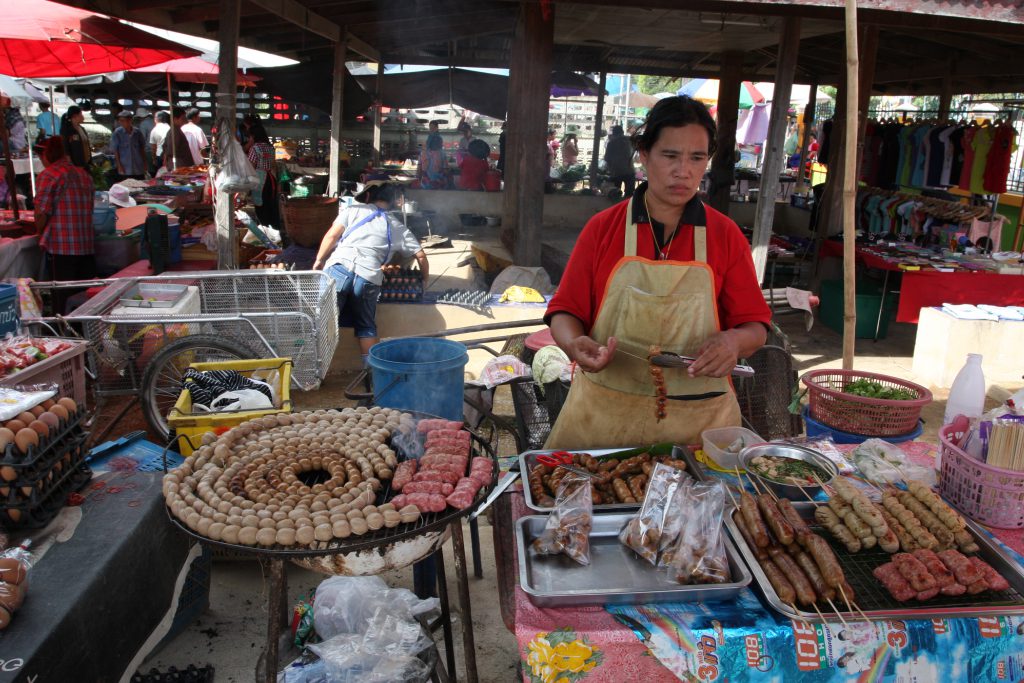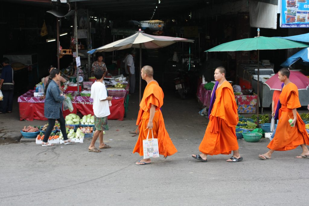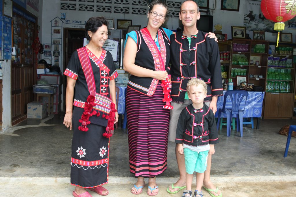 Hier zitten ook weer een hoop volkeren die gevlucht zijn uit het naburige Birma. De beroemdste van de volkeren is de karen, oftewel de lang nekken. We hebben met elkaar een lange discussie of we naar een Karendorp toe moeten gaan. We hebben prachtige foto’s gezien van de vrouwen die ringen om hun nek heen hebben waardoor ze hele lange nekken hebben gekregen. De andere kant van het verhaal is dat Thailand niet het vluchtelingen verdrag van de VN heeft ondertekend, en dat de gevluchte volkeren stateloos zijn. Ze zijn als het ware gevangenen in hun dorpen, en ze worden door hun Thaise bewakers geëxploiteerd als menselijke dierentuin. Als Amnestie-donateur kan je daar niet aan meedoen. De traditie wordt tegenwoordig voornamelijk om economische redenen voortgezet en jonge meisjes krijgen de ringen weer om hun nek. Maar omdat de Karen zo n bekend beeld zijn, hebben ze het ook weer beter gekregen dan andere volkeren. We besluiten niet te gaan en kijken wel naar de foto’s die bij alle reisbureautjes hangen.