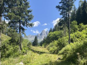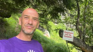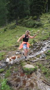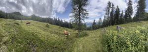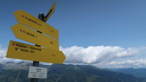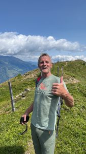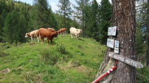 Koeien met die aan het grazen zijn op de berghellingen maken het voor Esther helemaal goed. En we nemen ook de tijd om daarvan te genieten en filmpjes en foto’s van te maken. Op een bepaald moment valt me opeens op dat ik niet meer met mijn fototoestel foto’s aan het maken ben, maar het fototoestel heb gepakt. Heel de tas doorzoeken, maar de telefoon zit er niet meer in. We kunnen ook niet meer terug want met flink doorlopen halen we net de laatste verbinding van de Kreuzeneckbahn om 17:00, en de 3 uur extra naar beneden lopen zien we ook niet zo zitten na deze tocht van 13km. Balen in het hotel krijg ik op eens de ingeving om op iCloud te kijken, en daar wordt aangegeven dat de telefoon op 1777 meter hoogte bij de Mösern Hutte ligt, op de splitsing van route 2 en 3. Na een slechte nacht slapen breng ik met de auto eerst Esther naar een berghut, die ziet nog zo’n loopdag niet zitten, en ga ik weer omhoog met de Kreuzeneckbahn. Vandaag loop ik het een missie. 2 uur doorlopen met een gemiddelde hartslag van 145 kom ik bij de Mösern Hutte aan, maar na 45 minuten tevergeefs rondjes lopen heb ik de telefoon nog steeds niet gevonden. Er komen nu de eerste andere lopers aan die ik naar mijn telefoon laat bellen, maar nog steeds te vergeefs en een kwartier later geef ik het op. Ik ga er maar een leuke dag van maken en via route 5 richting de kleiner Salzkofel. Und jetzt folgt eine unglaubliche Geschichte. De route 5 gaat echt heel stijl omhoog. Balen van de telefoon maar nu ook genieten van lopen boven de boomgrens kijkende over de bergen. Bij Knoten op 1963 meter ben ik dan boven, maar de kleiner Salzkofel ligt niet zo ver meer weg. Lopende over de bergkam komt er opeens een Oostenrijker stijl omhooglopen. We komen precies tegelijk op een punt en maken even kort een praatje, we zijn toch de enige in de weide omgeving. Dan zegt hij dat hij op zoek is naar een Nederlander. Nou Nederlanders genoeg denk ik, hoezo? Nou ik heb hier een telefoon van een Nederlander. Dat is mijn telefoon roep ik in ongeloof. Hij wilde de telefoon naar de Poldis Jausenstation brengen nadat hij hem op de Großer Salzkofel had gevonden. Hoe kan die telefoon op de Großer Salzkofel (2498m) zijn gekomen, 700 meter hoger en 4 uur wandelen van waar ik de telefoon ben kwijtgeraakt. En wat is de kans dat ik die man precies zo tegenkom. Dit zijn variabelen die de rest van de dag door mijn hoofd springen. 1 minuut korter zoeken en ik had hem al misgelopen. Mijn keerpunt ligt op de Kleiner Salzkofel, 2222m voordat ik weer in mijn eigen dal naar beneden ga. Onderweg kom ik nog wat mensen tegen die blijkbaar ook het verhaal al hebben gehoord. Opgelucht haal ik vandaag ook net weer op tijd de Kreuzeneckbahn naar beneden.