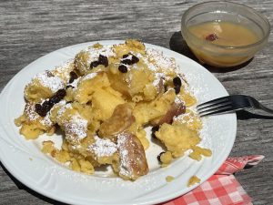Gisteren 13km gelopen aan op de berg die tegenover ons hotel ligt. Het eerste stuk gaat heel stijl omhoog met de Kreuzeneckbahn die ons van 605 naar 1211 meter hoogte brengt. Op een kaartje zien we verschillende wandelingen, en wij proberen de route 2 te gaan volgen. Dat ziet er niet zo ver uit en is een leuke wandeling. De eerste stop is de Poldis Jausenstation waar we eerst aan het witbier gaan. Oi-oi-oi-oi daar aangekomen zijn we ook al echt aan het bier toe, het is toch wat steiler en pittiger dan dat we hadden ingeschat.