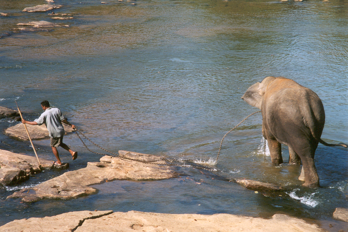 Het leukste hier was toch wel het Olifanten weeshuis in Pinawella, een uur met de bus van Kandy. 100 foto’s schiet ik, en dan moet ik me echt inhouden omdat ik nog geen digitale camera heb. Eigenlijk doen de olifanten hier niet zo veel, en dat is het mooie van het geheel. De jonkies krijgen te drinken, en ze staan een beetje. Als ze hiermee klaar zijn lopen ze naar de rivier en lopen ze wat rond. We waren bang dat dit bekende park over georganiseerd zou zijn, maar het tegendeel is waar. De olifanten kunnen geheel hun eigen gang gaan, en lopen wat rond en badderen in het water. Soms wil er wel eens een ontsnappen naar de overkant, maar dan wordt hij snel terug gehaald.