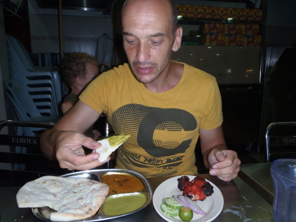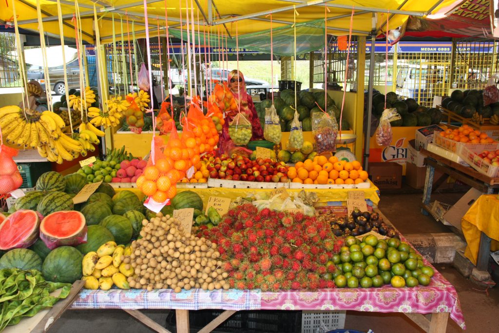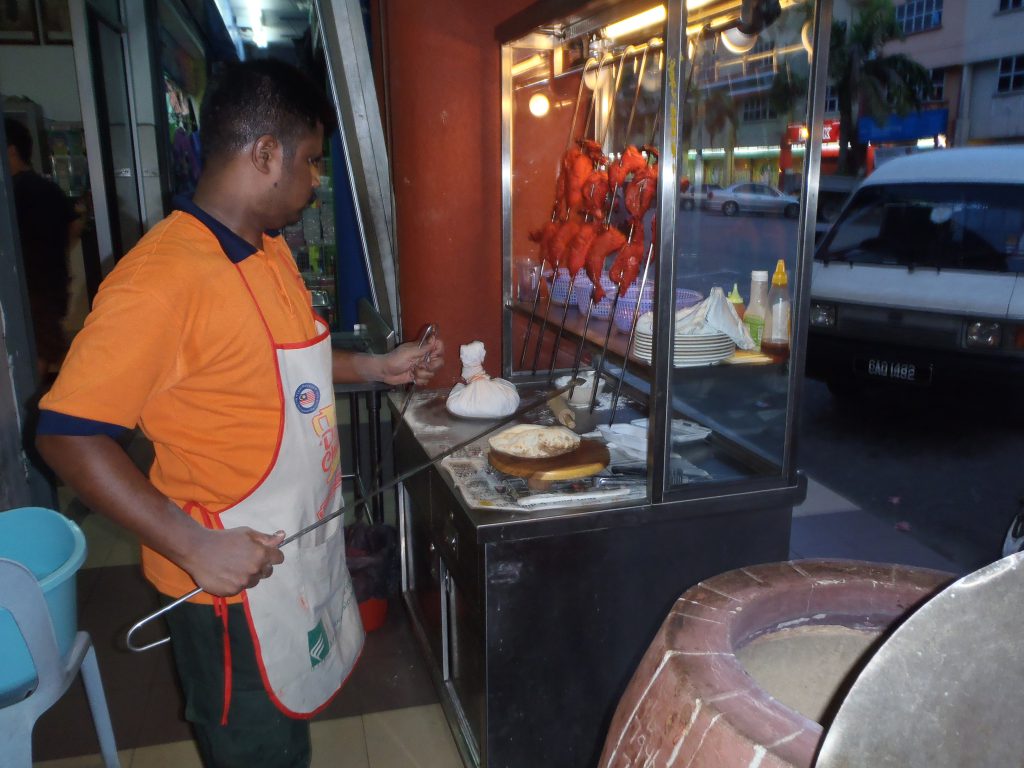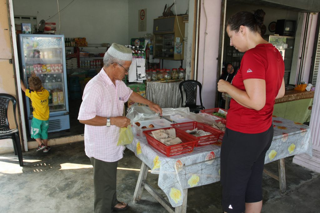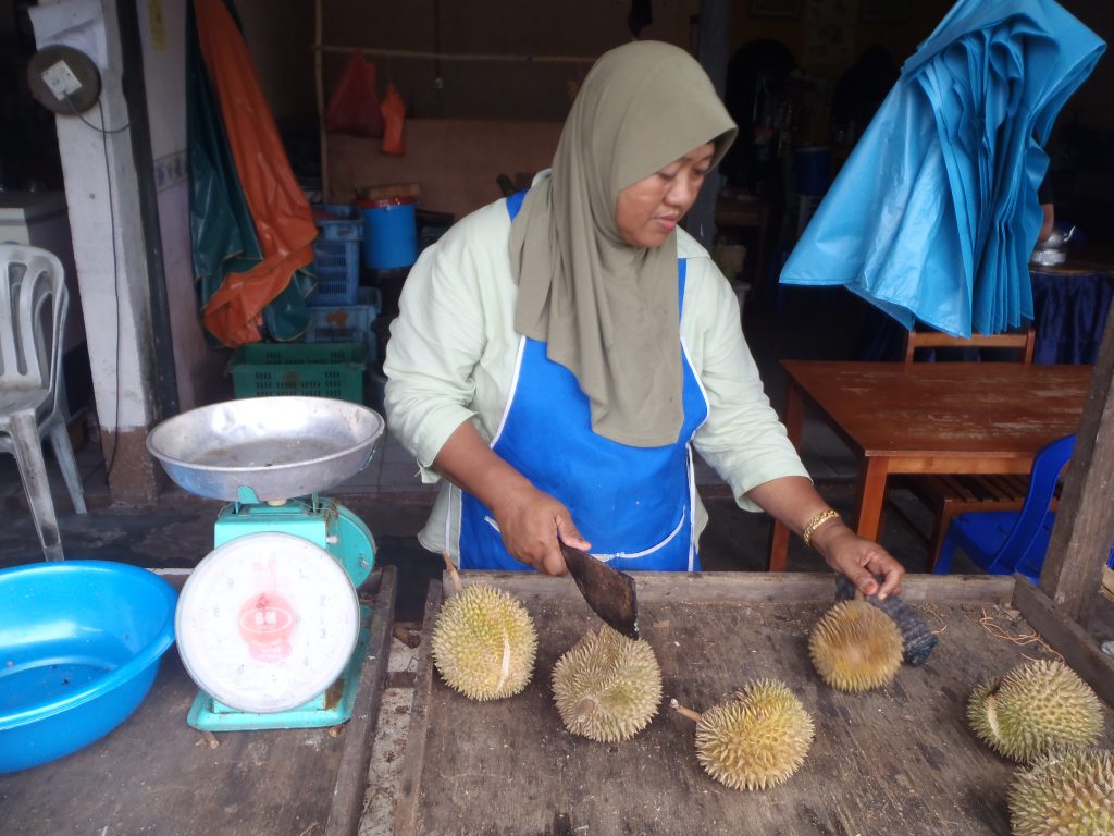 De meeste Chinese restaurants hebben veel meer Chinese gerechten op het menu staan. Het voelt toch wat vreemd om in dit islamitische land zoet-zuur varken te eten, maar het smaakt wel fantastisch. Als we het chinees weer eens zat zijn hebben we soms het geluk dat een dorp een Indiase gemeenschap heeft. We eten ons weer vol met kip-biriani, naan, roti en kip-tandoori. We worden helemaal blij als ze van oorsprong uit zuid India komen want dan hebben ze meestal ook dosa. We weten niet waar we een dosa in Nederland kunnen kopen, en laten hier dan ook geen mogelijkheid aan ons voorbijgaan om dit te eten. De vadai is nog wel het meest te koop. Dit is een indiase snackbal die hier geplet wordt en overgoten wordt met hete pindasaus. De thaise invoed is dat je overal wel TomYam kunt eten. Dit is een hele lekkere zeevruchten soep met citroengras maar vaak zelfs voor de vuurvreter Arjan veel te heet. Voor onze durian liefde zijn we precies in het goede seizoen. Juli en augustus is namelijk durian seizoen en overal kan je de grote stekelige vruchten kopen. Als Arjan weer met de fiets naar een groenteboer gaat voor een durian, komt hij een uur later helemaal vol terug. Er moet altijd eerst wat geproefd worden, waarbij de verkopers niet alleen kunnen zien of de durian goed is, maar ook of die gekke blanke op die fiets echt wel weet wat hij koopt. Als het gezicht van de goddelijke smaak gaat glunderen geven ze nog een stukje, en nog een stukje totdat er echt niets meer bij kan.