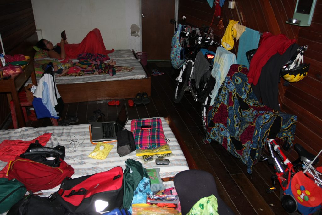 De hotels zijn heel wisselend van kwaliteit. Wij eisen niet zoveel van een hotel, maar we moeten in ieder geval onder de dekens durven liggen zonder het gevoel te hebben dat de dekens uit zichzelf bewegen. Doordat we maar beperkte afstanden kunnen afleggen zijn we meestal al blij als er in een dorp een hotel is. Als we in het Nenasi motel aankomen wordt ons al gelijk verteld dat de kamers 40 zijn ipv 70. Deze gulle korting klinkt goed maar geeft ook zijn bedenkingen. Els inspecteert de vier-persoons kamer, en vraag om een schone kamer. Als Els die kamer heeft bekeken vindt ze dat die kamer wel voldoet, maar dat die kamer wel gelijk schoongemaakt zal worden. We zien dat het schoonmaken zo klaar is, want volgens de schoonmaakster voldoet een emmer water door de badkamer gooien. Wij zeggen dat we wel even verder gaan kijken, maar er is verder niets in Nenasi. We hebben nog een hoop dat we in een chalet aan zee kunnen slapen, maar in eerste instantie kunnen we niemand vinden, en bij nog wat navraag blijkt het helemaal vol te zitten met werklui. Even later zijn we weer in het Nenasi motel, we weten dat we maar een nacht daar hoeven te slapen en dat we op tijd gewekt zullen worden door onze dekens.