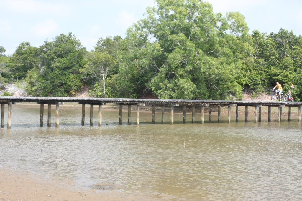 We reizen verder met de fiets richting Kuantan. We hadden al gezien dat de autoweg 3 hier een echte autosnelweg was, dus nemen we de lange route langs de zee. Gelukkig is dit ook een hele mooie route met weinig verkeer en onderweg koeien, geiten, schapen en apen op de weg, en een famillie otter in een sloot langs de weg. In drie dagen jungle hebben we niet zoveel dieren gezien als op deze dag. Het strand waar we langsfietsen wordt ook steeds mooier, en er is niemand te bekennen. Met Simeon in de branding spelen en heremiet kreeftjes van verschillende grootte vangen en vertellen hoe ze leven , en dit alles op een spierwit strand dat zo ver reikt als we kunnen kijken met daarop niemand te bekennen. Deze rust is zalig, behalve als je toch weer wat wilt eten. We zitten in een huisje met een grote tuin, en het restaurantje een stuk verderop aan de kant van de weg zou tussen 2 en 7 uur open zijn. Als we hongerig aankomen om 6 uur zijn ze inderdaad open, maar ze hebben geen eten want het is ramadan. We eten dan maar noedelsoep in ons hotel en koekjes als desert.