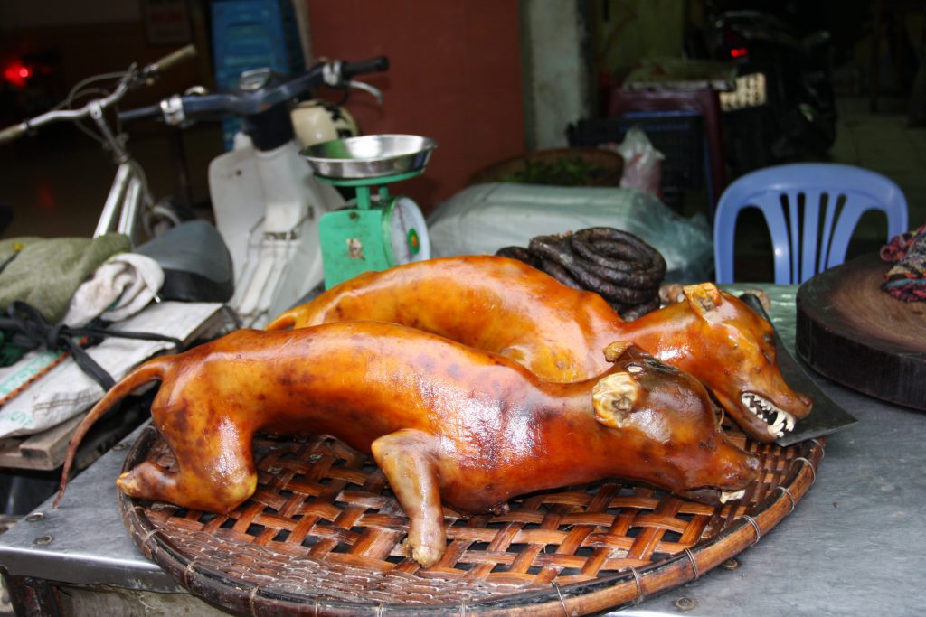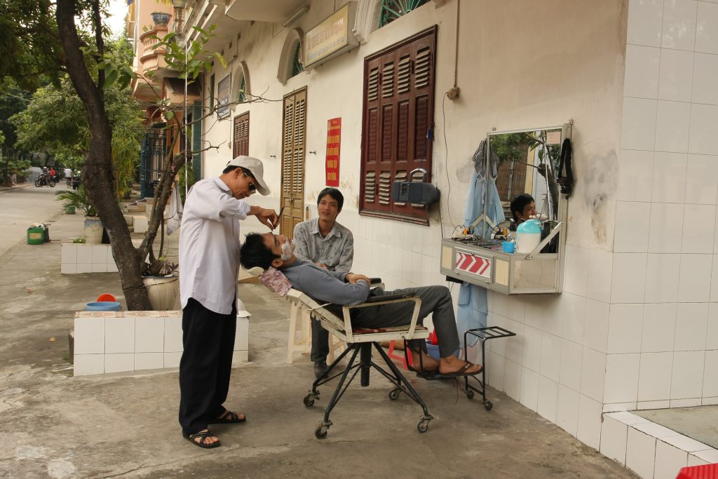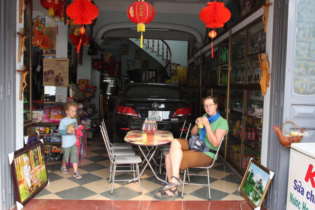 Hanoi heeft ook nog sterk zijn thema straten, en wij zitten in een straat met alleen maar verfspullen, ernaast een straat met lucht afvoeren en daarnaast de sloten en kettingen. We zijn natuurlijk op zoek naar twister, een van de weinige drankjes waar Simeon gek op is. Maar een winkeltje met drinken, daar moeten we een paar straten voor lopen. Verder zwervend door de straten zien we ook voor het eerst twee gerookte honden liggen. De eerste honden sinds lange tijd waar Els geen angstgevoel bij had. Mandarijnen, een appel en een wortel voor het paard van Sinterklaas en we kunnen weer op zoek naar ons hotel.