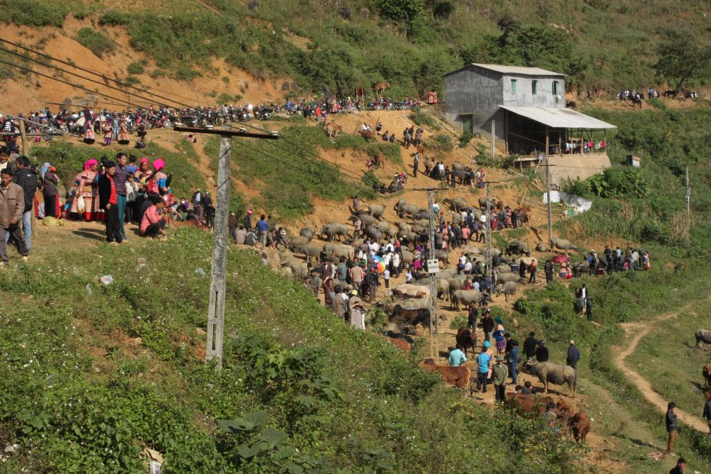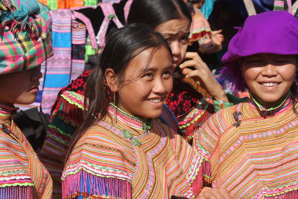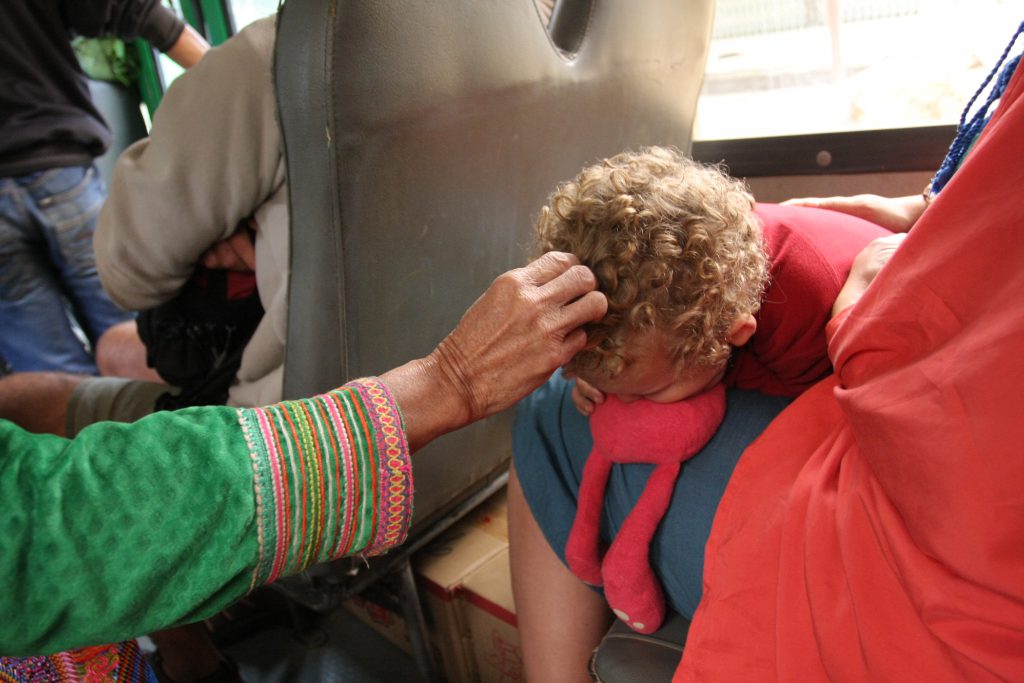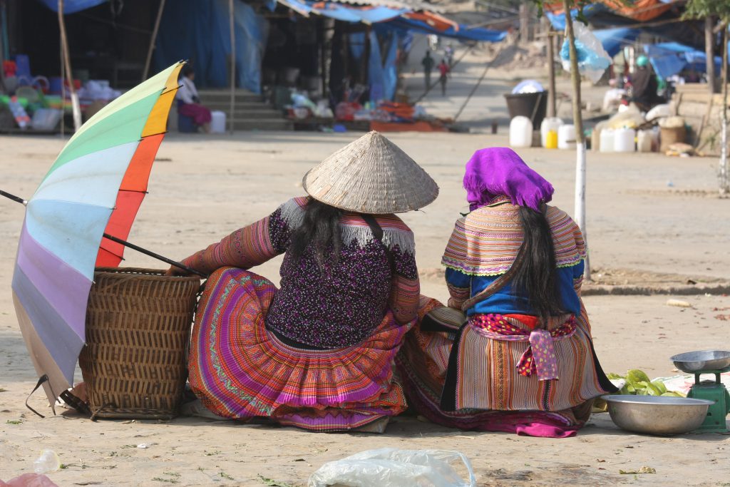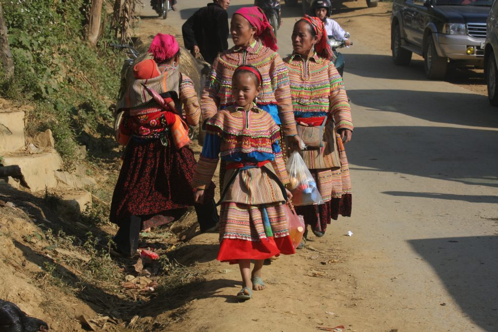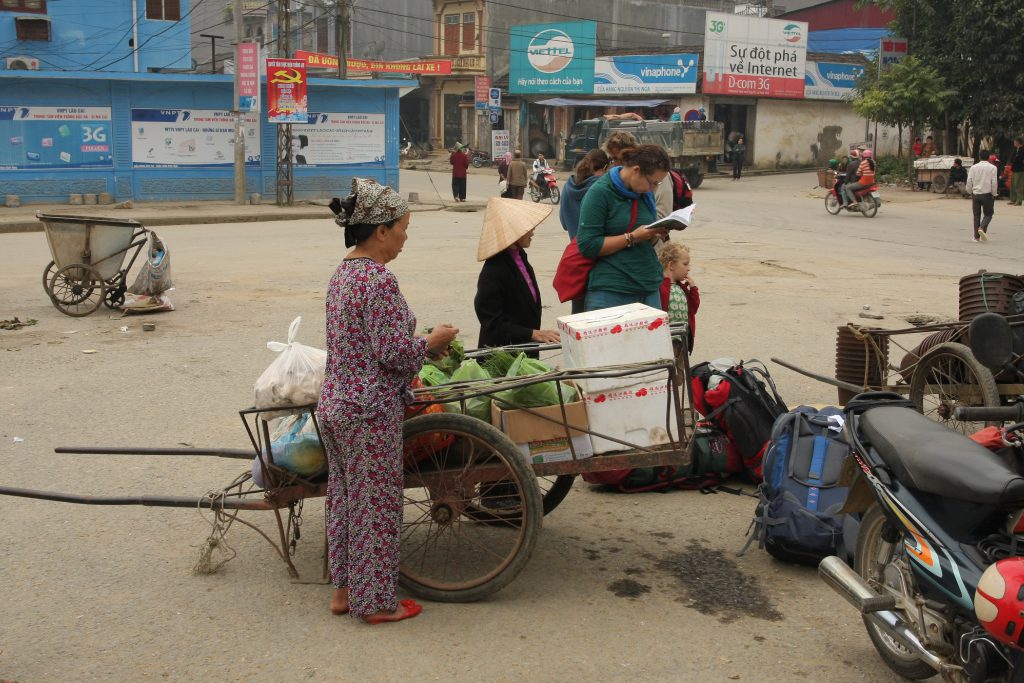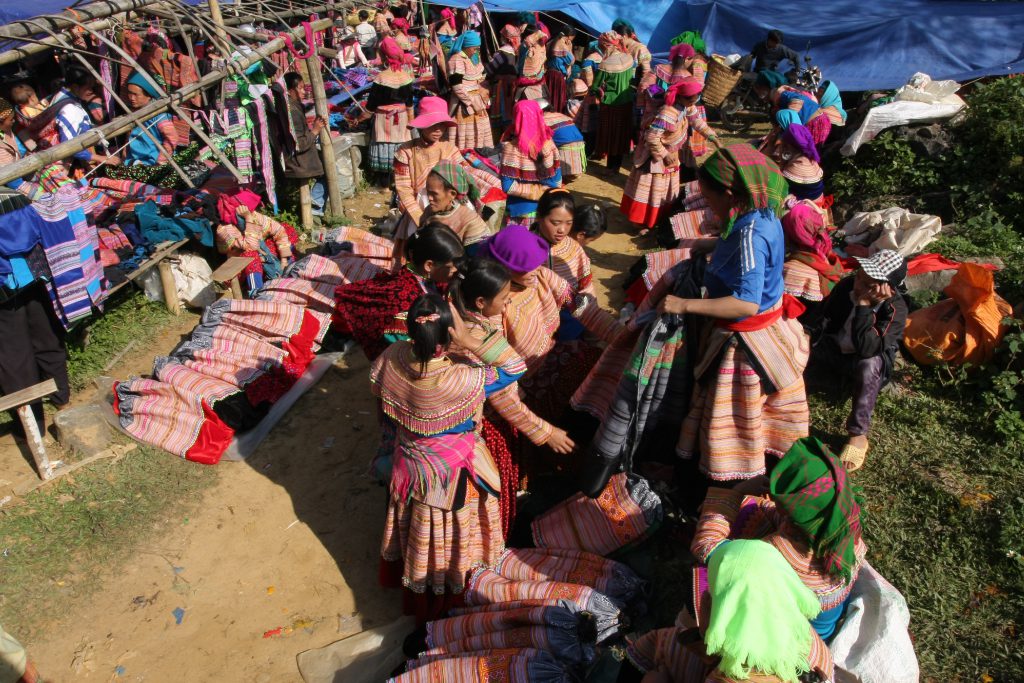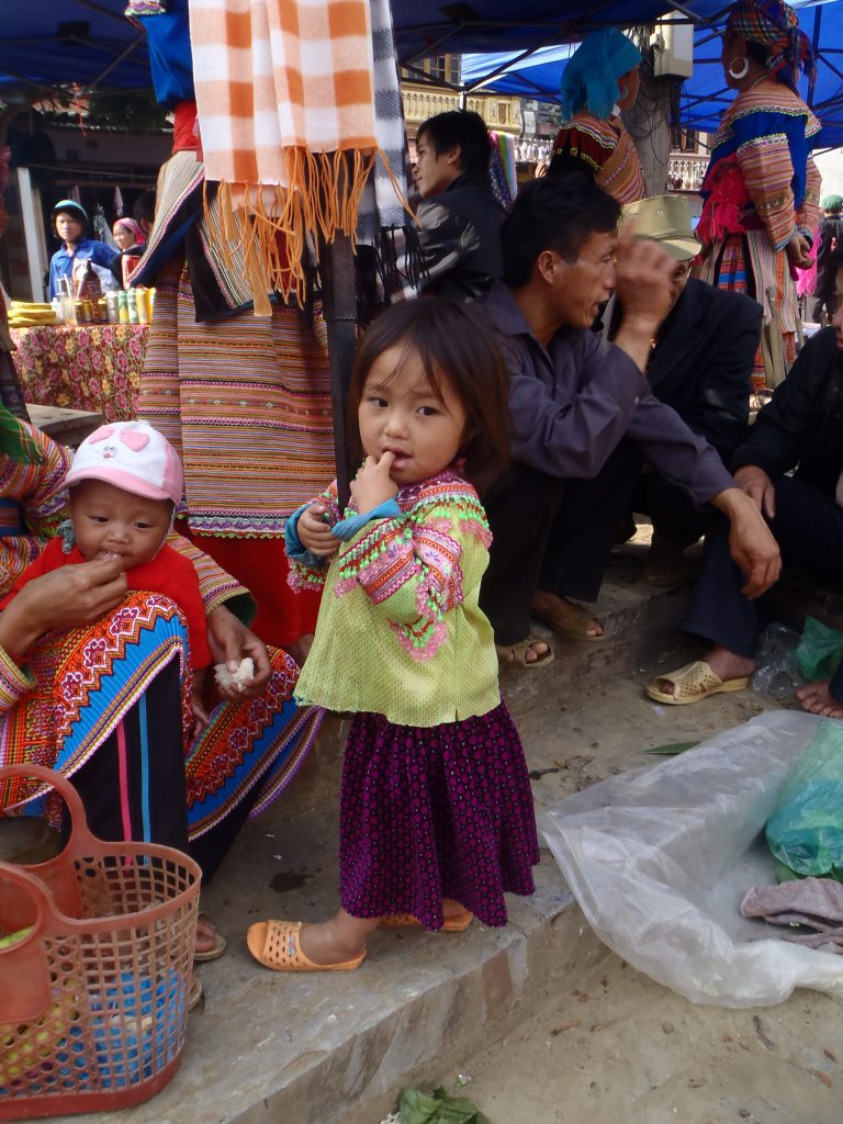 Er is vanaf hier maar een logische bestemming en dat is Sapa, en als je vraagt waarom dan krijg je het antwoord omdat alle toertjes daar naartoe gaan. Met nog een Italiaans/Spaans stel zoeken wij transport naar Bac Ha. Het moet ongeveer 80.000 Ðong per persoon zijn maar de prijs begint op 200.000 Ðong. De minibusjes en taxi’s gaan liever voor hogere bedragen naar Sapa, maar iemand wil ons wel voor 600.000 Ðong voor alle 5 meenemen. We moeten even aan de andere kant van de weg wachten, en dan komt een oude gammele bus met passagiers voorrijden. De onderhandelingen gaan weer verder en uiteindelijk betalen we 450.000 Ðong. Ondertussen is de volgende trein ook al aangekomen vanuit Hà Nôi, maar niemand die naar Bâc Hà gaat, dus gaan we rustig op pad. Er moeten eerst nog wat dozen bloemen, kippen, groenten en jerry cans opgehaald worden, en dan begint de tocht. Na nog een paar stops zitten er al meer minderheden in klederdracht in onze bus dan dat we in Noord-Thailand totaal hebben gezien. De lange dag en korte nacht zijn we alweer vergeten, want dit is wat we toch het mooist vinden.
