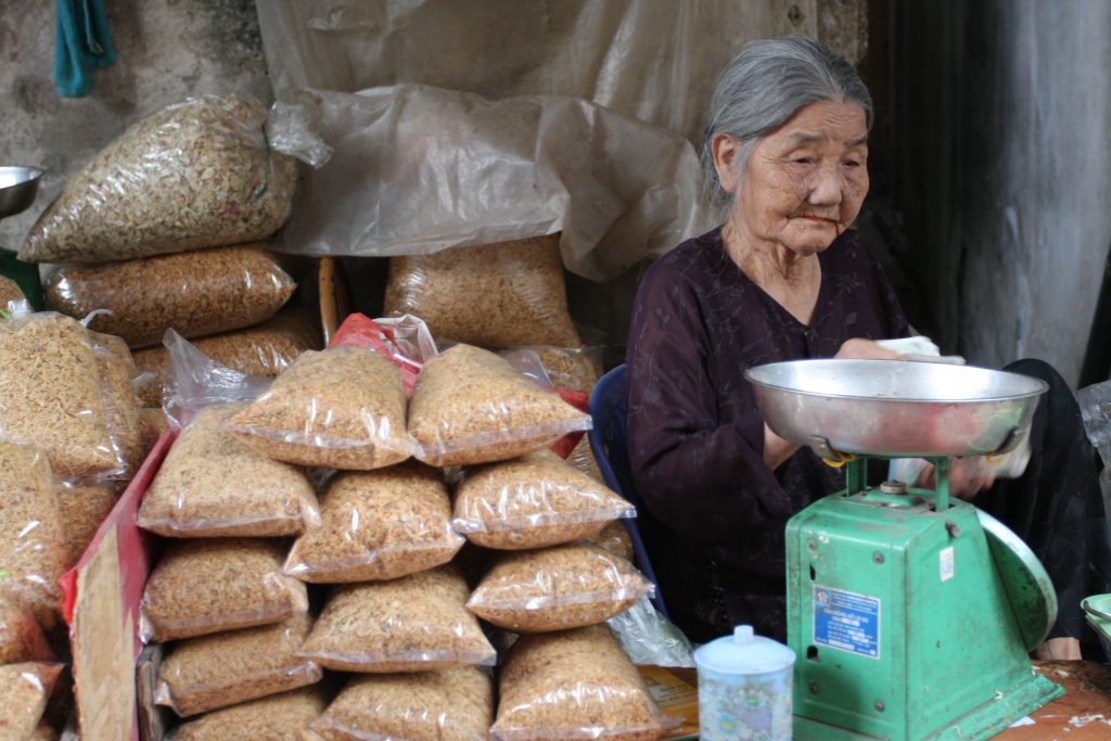 Het geluid van de schreeuwende varkens gaat door merg en been. Ze zijn er wat minder blij mee dat ze vandaag van eigenaar gaan wisselen. De beesten zijn ook zo intelligent dat ze beseffen dat dit wel eens de laatste keer kan zijn dat ze op de markt van Bâc Hà zijn. De eenden worden op gewicht verkocht, kippen worden nonchalant met een hand vastgehouden en voor onze voeten valt een brommer waar een grote bak vis achterop stond om. Hanen worden dronken gevoerd om nog feller in het gevecht te zijn. Paarden, koeien, ossen, vogeltjes, hondjes, vlees, vis en groenten, van alles wordt er verkocht op deze markt. Lopend vanaf ons hotel doet de markt wel erg toeristisch aan. Hier wordt de toeristen meuk zoals poppetjes, T-shirts en tekeningen verkocht. Na gisteren voelt dit als een teleurstelling, maar gelukkig is dit spul nog niet verder doorgedrongen. De gebloemde H´mong kopen ook hier hun nieuwe kleding, plastic bakjes en kaplaarzen. Bij de eetstalletjes is er de keuze tussen gele en witte noedel soep, of een heel goed gevulde ingewanden soep. Vietnamezen hebben het te druk om kinderen te hebben, die moeten te hard werken. Alleen zie ik die mensen die dat zeggen nooit werken. Het meisje in het hotel kijkt helemaal geschokt als ik vraag of de tweeling van twee jaar van haar zijn. “Neeeeeee, ik ben pas 21.” Ieder H´mong meisje van rond de 18 loopt op de markt met een kind op haar rug, en een meisje van 13 staat in nog kleurrijkere kleding te kijk dat ze huwbaar is. Voor Simeon is twee dagen markt wel wat veel, en daarom gaan Els en Arjan om beurten rondlopen. We krijgen wel nog een opdracht van Simeon mee: “Als rullie op de rommelmarkt professor Z of een andere Cars auto zien, die ik nog niet heb, koop die dan maar!”