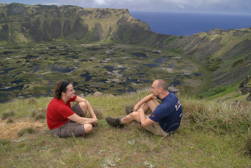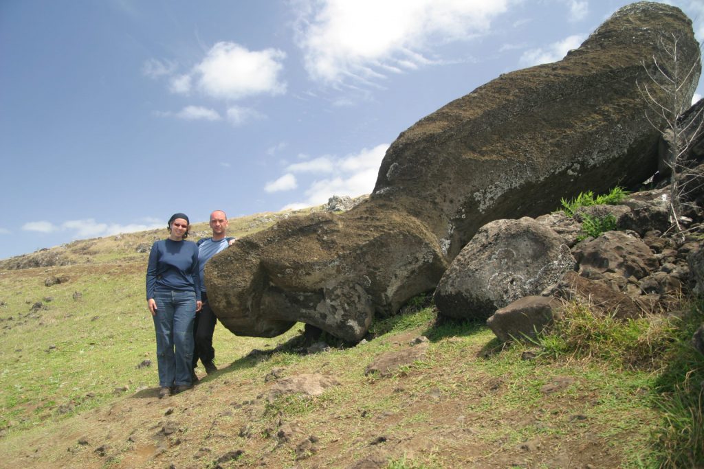 Vorige jaar wisten we het zeker, NOOIT MEER ZO VER VLIEGEN. Maar nu zitten we weer in het vliegtuig. 2 1/2 uur naar Madrid, 14 uur naar Santiago de Chili en dan nog eens 5 uur over alleen maar lege oceaan voordat we op Rapa Nui, oftewel Paaseiland, zijn.