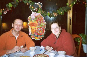 Het hotel tegenover het station laten we aan ons voorbij gaan, want ze zijn nog bezig met het wonderdoekje en het zal nooit wat worden. We gaan midden in de Russische wijk zitten, het centrum van het oude Harbin. Harbin is een van de weinige Chinese steden waar stedelijke vernieuwing niet betekent: bulldozer er overheen en flatgebouwen neerzetten. De oude Russische gebouwen zijn mooi gerestaureerd, er staat zelfs een oude orthodox Russische kerk, en de stad heeft een Oost-Europese sfeer. In 1896 komt Manchurije, de oude naam van dit noordelijke gedeelte van China, onder bestuur van Rusland als deze de treinverbinding van Moskou naar Vladiwostok via Harbin doortrekt. In 1904 komt het onder Chinees -Japans bestuur en Pu Yi, de laatste keizer van China, wordt nog even keizer van Manchurije als een Japanse marionet. In 1917 wordt de stad de grootste Russische stad buiten de sovjet unie als heel veel Wit-Russen voor de bolsjewieken vluchten. In 1945 was het weer even Russisch totdat de volksrepubliek het in 1946 in zijn macht krijgt. De stad heeft hierdoor de bijnaam klein Moskou gekregen. Als we over de Zhongyang Dajie, de hoofd winkelstraat, lopen ontdooit ons hart weer als we de sfeer van de huizen, versierd met lichtjes en lampionnen voelen. Beijing voelt zo leeg aan, en er was bijna niemand op straat. Hier is het een gezellige drukte van mensen die aan het winkelen zijn, de ijsbeelden bewonderen in de straat of hun kinderen opvangen aan de voet van een ijsglijbaan.