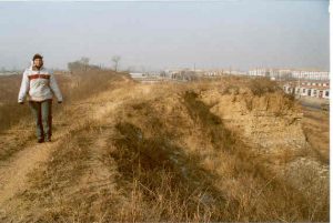 Onze wandeling over de echte oude, niet gerestaureerde muur van de stad, kronkelend naar de zee was indrukwekkender. Maar weinig stenen staan tegen de aarden wal. In de loop van de eeuwen zijn deze gebruikt voor de bouw van huizen hier in de buurt. Hier geen wanhopige verkopers die je van alles willen aansmeren want hier komen de meeste toeristen niet. Dit is voor ons de meest authentieke muurwandel ervaring die er is. Langs de plastic kassen, vervuilende industrie en landerijen. Over een stuk van een paar honderd meter is de muur weggehaald, omdat de treinen erlangs moesten. In China geen krampachtig behoud van al het oude, gewoon afbreken. Wat er dan nog aan “ouds’ is voelt dubbel zo authentiek.