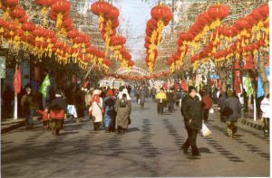 Het is nu minstens 40 graden kouder dan de vorige keer in Beijing (Peking). Met een paar graden onder het vriespunt is het zalig wandelen langs het grote schilderij van de roerganger aan het plein van de hemelse vrede. Als ik een uurtje rondloop bedenk ik dat ik geen gids of plattegrond bij me heb. Ik voel me in Beijing alweer net zo thuis als in Delhi, Lhasa, Madras, Kathmandu, Quetta, Esfahan, Damascus en Dordrecht. Twee PLA (vrijheidsleger van het volk) soldaten lopen door een smal straatje te marcheren en om me heen zie ik veel noedelskraampjes, restaurantjes en andere winkels.