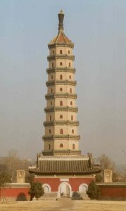 Wij lopen rond met -5ºC en wandelen door de akkers van platteland-China van het ene mooie gebouw naar de volgende.