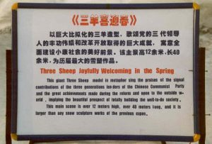 Even later staan we bovenop de eerste poort over het immense plein uit te kijken en nemen het defilé af van auto’s en bussen. Ik probeer deze keer in China niet te veel aan politiek te denken, maar kan op sommige plekken de gedachte niet onderdrukken. Een maand nadat we hier in 1999 waren was dit plein het centrum van alle propaganda voor de viering van 50 jaar volksrepubliek China. De hele stad was opgeruimd van ongewenste elementen zoals zwervers, fietsers, niet-partijleden en toeristen. Tienduizenden ‘acteurs’ speelden voor ‘happy minority’, een grote parade van militairen trok voorbij, en Mao, die opgezet midden op dit plein ligt, kreeg een glimlach op z’n gezicht bij het horen van ‘Lang leven het Mao-isme’.