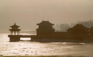 Als we op het station van Shanhaiguan binnenkomen staat de conductrice in de houding, statig saluerend naar haar collega’s op het perron. ’s Zomers is deze stad één van de grootste toeristische trekpleisters omdat de Chinese muur hier de zee in gaat. Het oude stadje is ook heel leuk, en we slapen weer eens in een leuk huisje met binnenplaats midden in de hutong, in plaats van de gebruikelijke standaardhotels. We zijn nu de enige die naar deze stad zijn toegekomen, en voelen ons een beetje verlaten als we de honderden eetkraampjes langslopen op weg naar de plek waar de muur de zee in gaat. Als we er eenmaal zijn is mijn eerste gedachte… Inderdaad hier loopt de muur de zee in. China roept altijd een idyllische sfeer op. Bij “De muur in de zee” denken we altijd gelijk aan iets bijzonders oud en heiligs. Voor Chinezen zijn al deze plekken gewone toeristische plekken, die alles moeten hebben van een pretpark. Gelukkig zijn nu de draaimolens, schiettenten en souvenirkraampjes dicht.