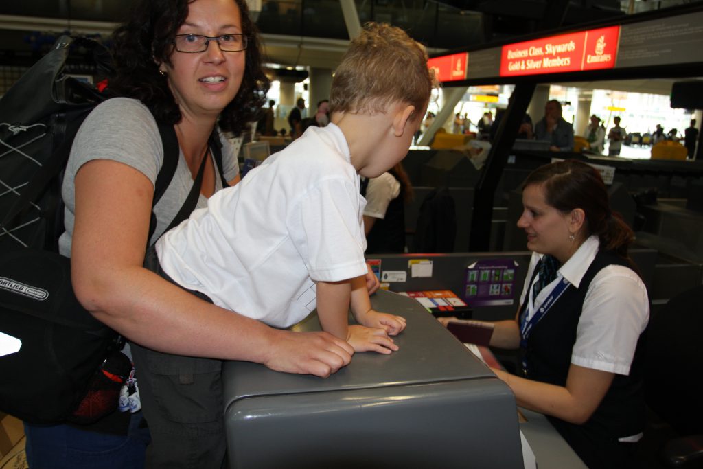 De eerste dag van de reis is altijd erg spannend. Komen onze spullen allemaal in Kuala Lumpur aan, en is alles nog heel? Op Schiphol worden we al gerust gesteld dat het allemaal goed komt. “Wordt de bagage door gelabeld?” vraagt Els voor de zekerheid. “Ja hoor uw bagage wordt op Dubai automatisch door gelabeld naar Auckland mevrouw Bosman.”
